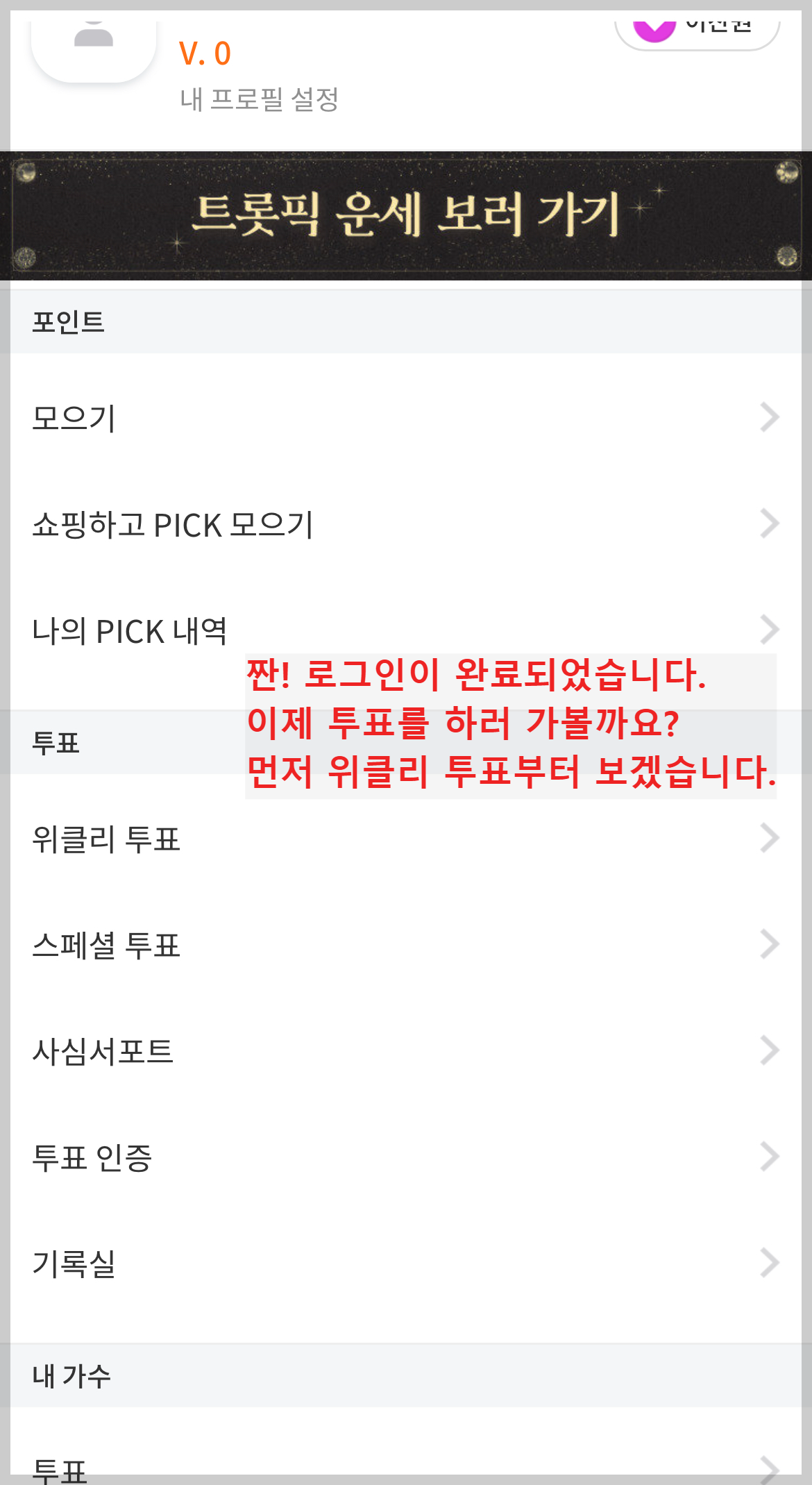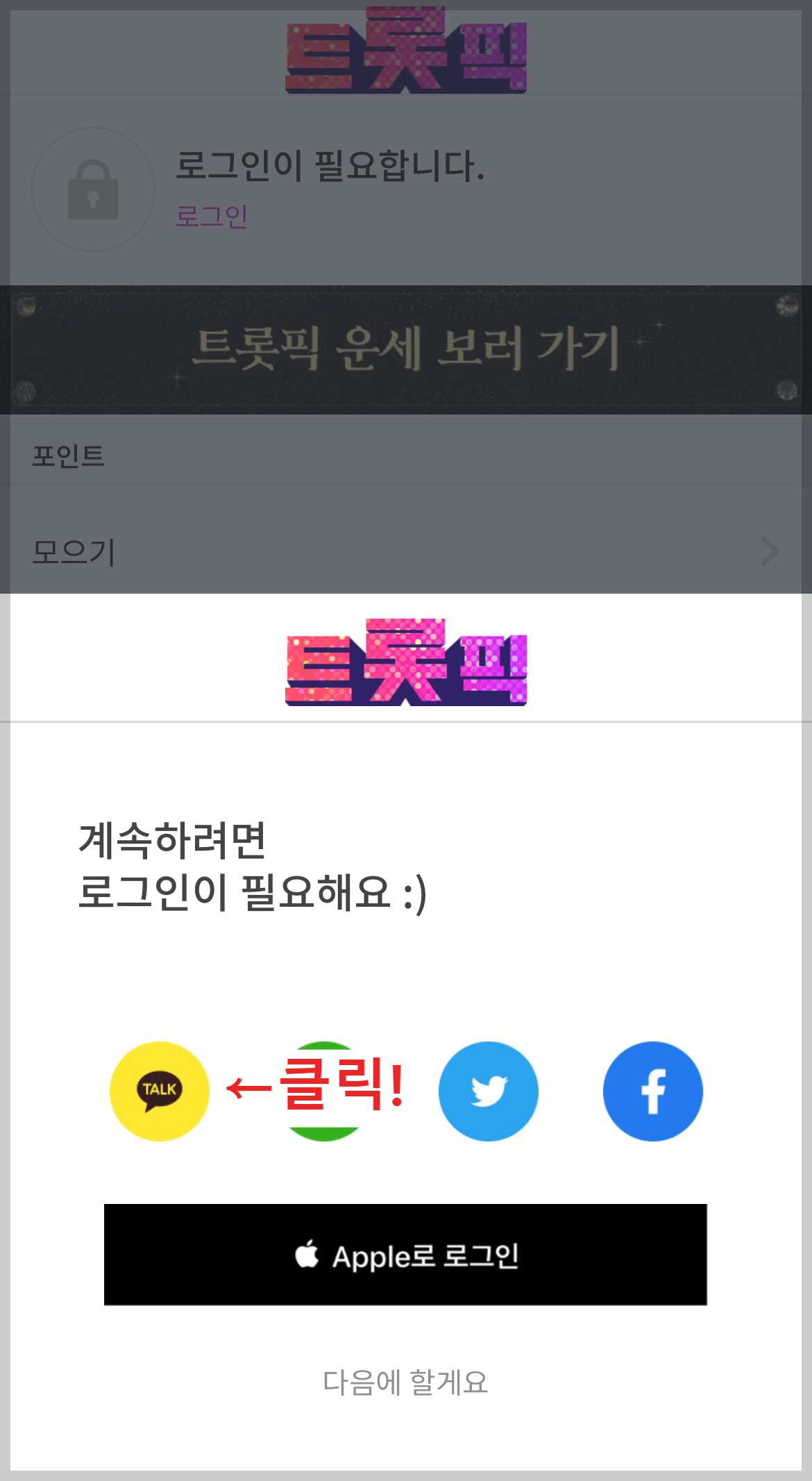 트롯픽 로그인 방법(회원가입) 설명
