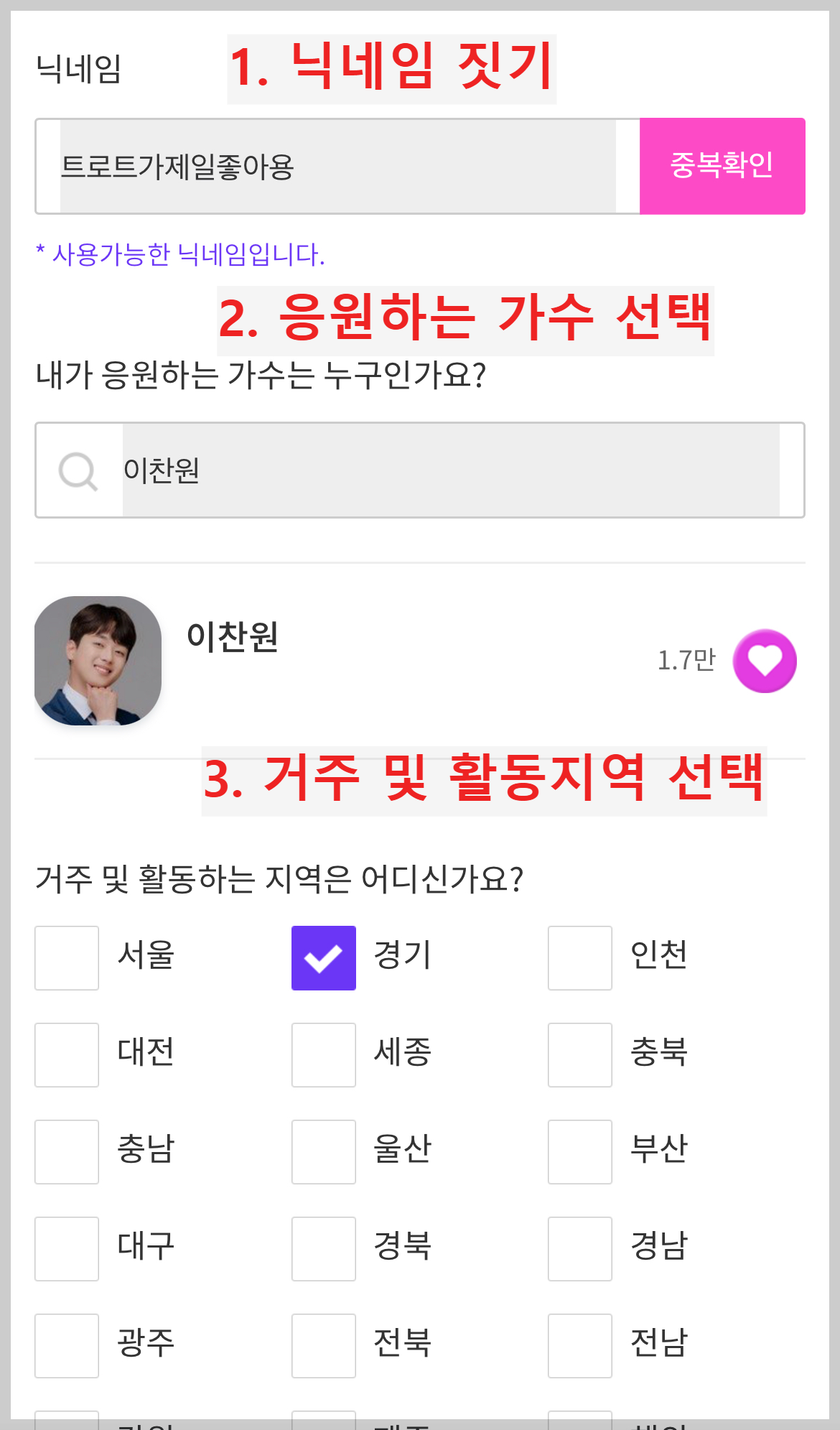 2. 응원할 가수를 선택