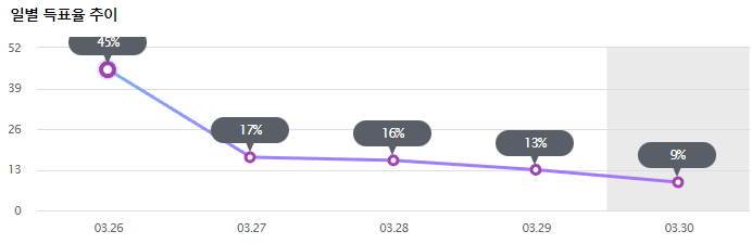 초반에 투표를 많이 해주신 덕인지 가면 갈수록 득표율은 낮아지고 있습니다.