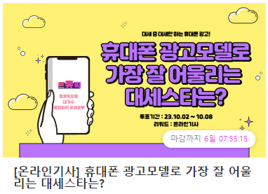 과연 휴대폰 광고모델로 가장 잘 어울리는 대세스타는? 1위를 차지할 대세스타는 누가 될까요!?