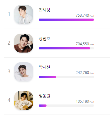 현재 순위 : 1위 진해성, 2위 장민호, 3위 박지현