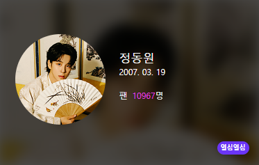한편 정동원은 트롯픽에서 10967명의팬을 보유중이며, 트롯픽 위클리 차트 최근 7개월 동안 2위를 벗어난적이 없습니다.