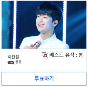 베스트뮤직 투표 후보는 2023년 1월~3월 음원을 낸 아티스트를 후보로 합니다. 또한 1위에게는 TMA에서 '트로피'를 전달할 예정입니다. 이찬원이 트로피를 드는 모습 꼭 보고싶은 것이 찬스의 마음 입니다.