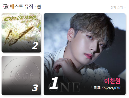 한편 이찬원의 첫 정규 ‘ONE’은 이틀 만에 누적 판매량 51만 장을 기록했으며, 이는 해외 팬덤이 형성되어 있는 아이돌에게도 절대 쉽지 않은 기록이라고 합니다.