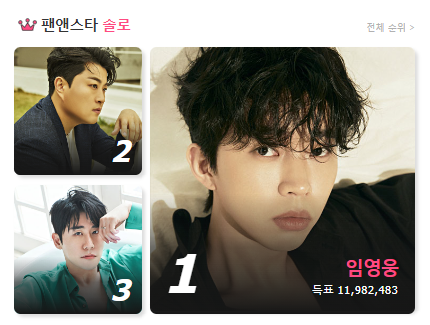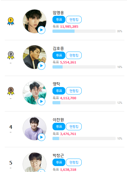 팬덤의 화력에 따라 2, 3, 4위의 순위변동이 있을것으로 보입니다.