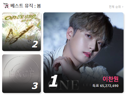 베스트뮤직 투표 후보는 2023년 1월~3월 음원을 낸 아티스트를 후보로 합니다. 또한 1위에게는 TMA에서 '트로피'를 전달할 예정입니다. 이찬원이 트로피를 드는 모습 꼭 보고싶은 것이 찬스의 마음 입니다.