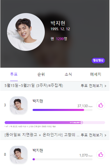박지현이 더 높은 순위로 가기 위해서는 엔돌핀의 힘이 적극적으로 필요한 상황입니다.